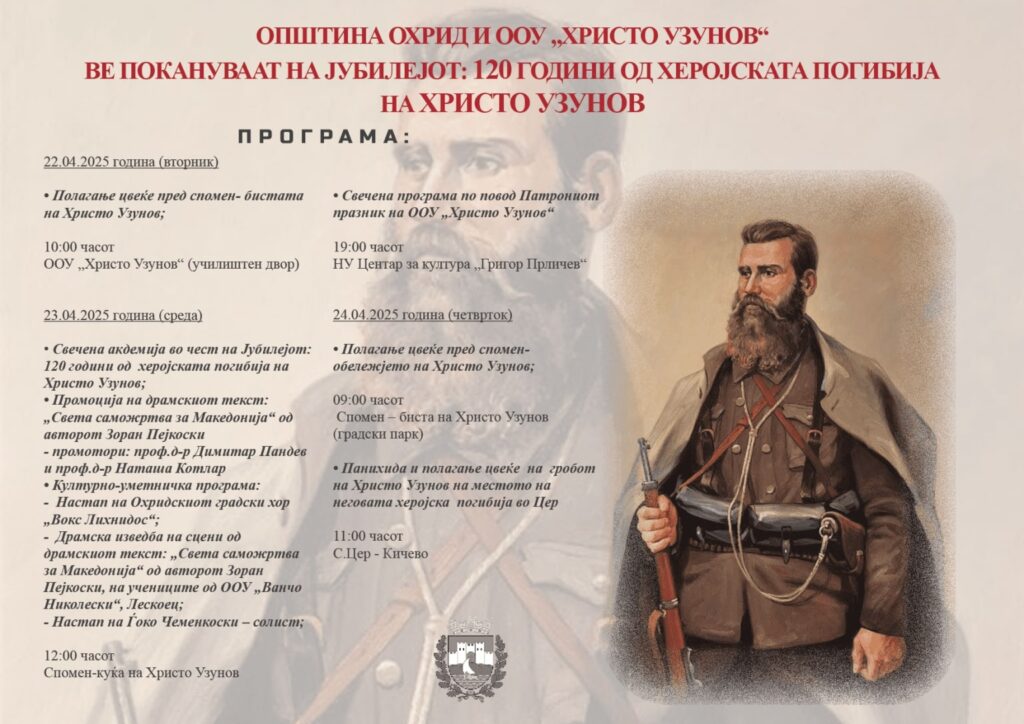 Во четврток, 24-ти април, предвидено е полагање цвеќе пред спомен бистата на Христо Узунов во градскиот парк во 10 часот, додека од 11:00 часот во селото Цер, Кичево, ќе се одржи панихида.