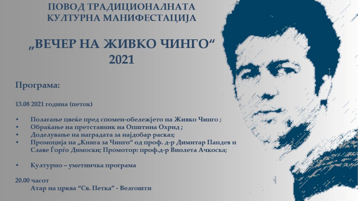 Предвидена е богата програма, а ќе биде положено свежо цвеќе пред спомен-обележјето на Живко Чинго. По обраќањето на претставник на општина Охрид ќе биде доделена наградата за најдобар расказ. Годинава добитник на наградата „Живко Чинго“ е Јована Матевска Атанасова, романсиерка и рецензентка, автор на расказот „Пура во Осака“.