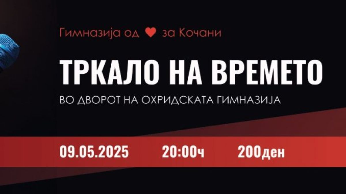 На 09.05.2025 година дворот на ОСУ „Св. Климент Охридски” – Охрид гимназијалците ќе ви се претстават со музичко-сценски настап кој сигурно ќе ги плени вашите срца. Како и секоја година настанот е тематски, а годинава ќе слушнете прекрасна музика од 60тите години па наваму. Годинава истиот е посветен на настаните од Кочани!, велат од гимназијата.
