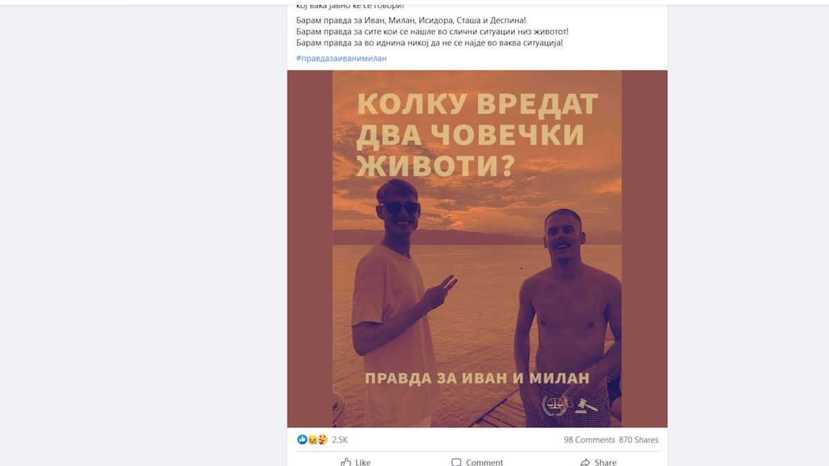 Уште еден апел масовно се споделува на социјалните мрежи напишан од еден од другарите на погинатите момчиња. Во него стои: