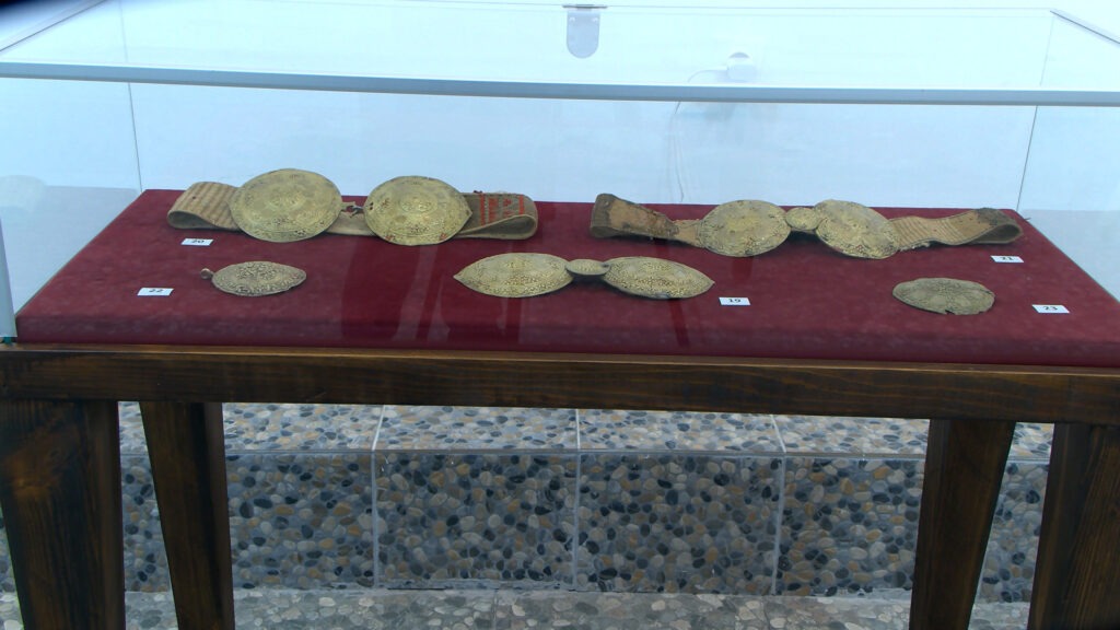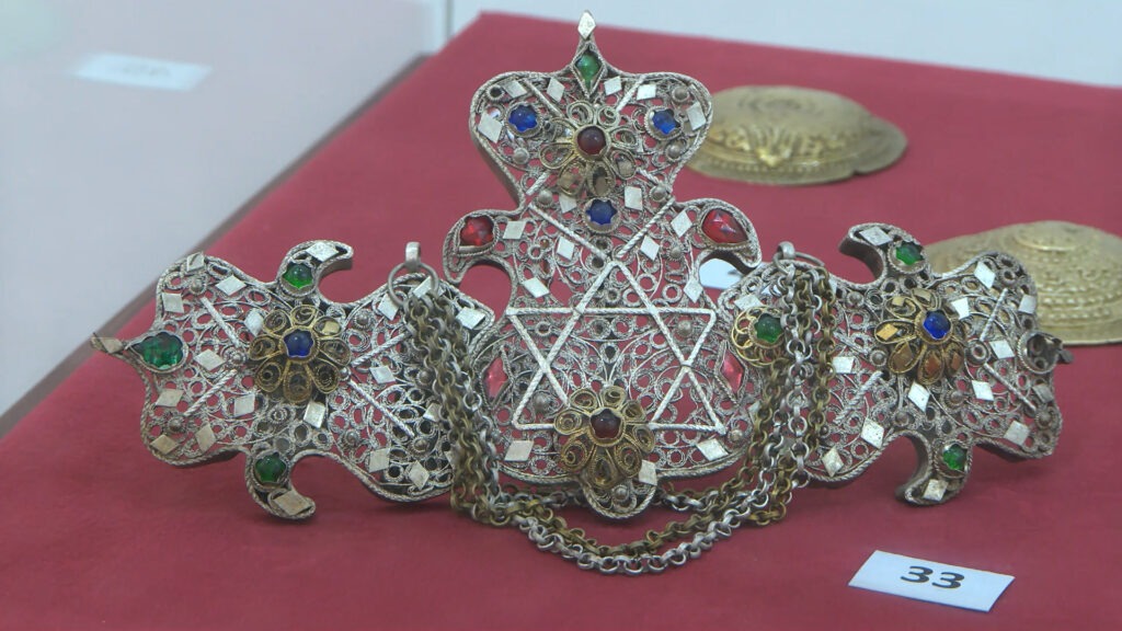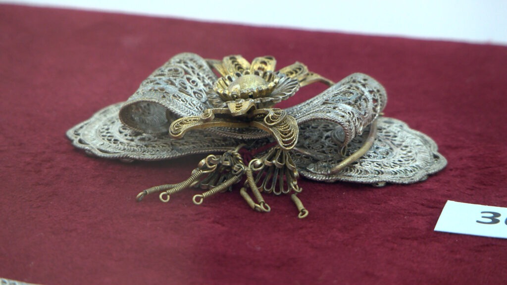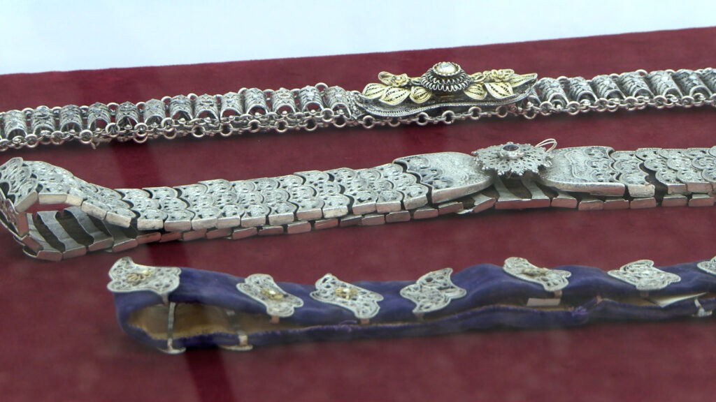 Станува збор за 48 вредни примероци, врвни занаетчиски творби, највпечатливиот накит на народната носија, украсот на градската облека што се носелво 19 и почетоците на 20 век. Повеќето се изработки од сребро, бакар, седеф во комбинација со други елементи од кожа, ппалтно и вез.