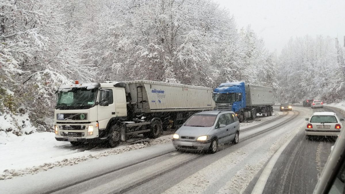 Од 7:45 часот се воведува забрана за сообраќај на ТМВ на патниот правец Струга-Ќафасан, a поради обилни врнежи од снегод 08.30 воведена е забрана за тешки моторни возила и на патниот правец Гостивар – Кичево преку планинскиот превој Стража.
