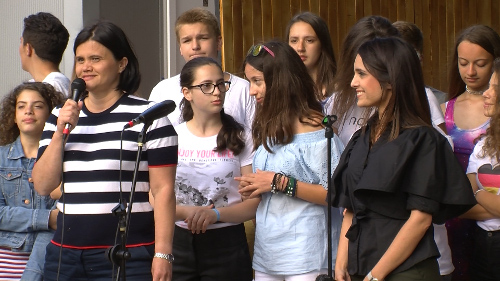 „На работилниците работеа сите заедно. Целта беше мулти култи, зближување помеѓу децата од трите земји и нормално акцент ставивме на тоа дека музиката ги спојува учениците и учењето на Германски јазик преку музика е многу полесно и поинтересно “ -вели Ивана Маховска, наставник по Германски јазик ОУ „Григор Прличев“.