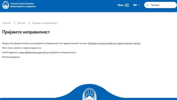 Граѓаните можат секоја забелешка, жалба или злоупотреба во болниците да ја пријават на веб страницата на Министерството.
