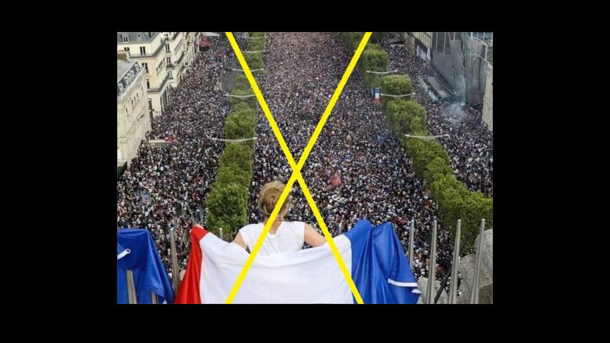 Фотографија од прославата за светски шампион во фудбал, претставена како протест во Париз против мерките на Макрон