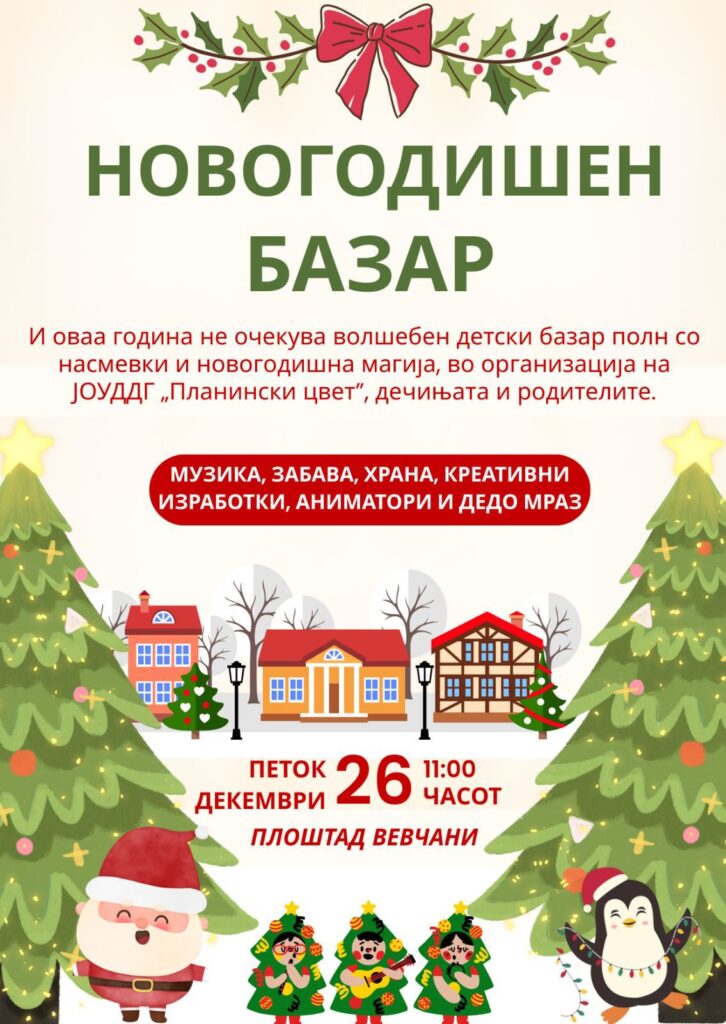 На 26 декември на плоштадот во Вевчани, ЈОУДДГ „Планински Цвет“ организира Новогодишен базар.