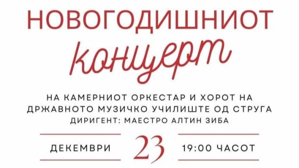Вечерва ќе се одржи Новогодишниот концерт на СМУ „Тодор Скаловски- Тетоец”