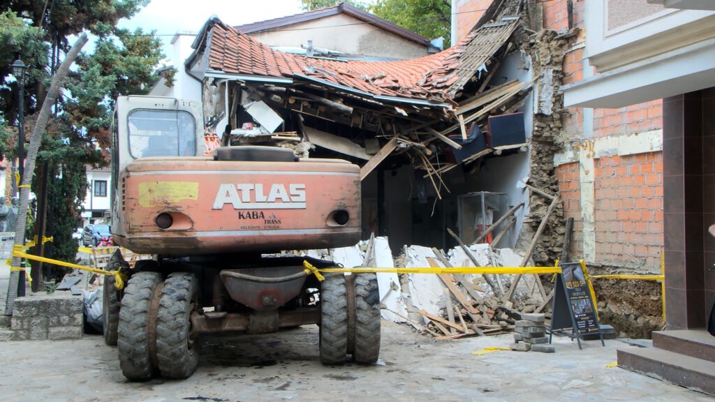 По уривањето на спомен куќата на Владо Малески во срцето на Струга, инспециските служби го затворија градилиштето
