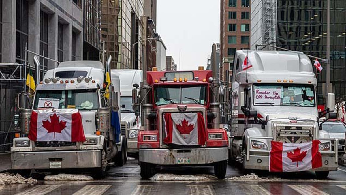 Од 7 февруари, камионџиите го блокираат сообраќајот кон Канада на мостот Амбасадор што го поврзува Виндзор, Онтарио, со Детроит во САД, принудувајќи ги автомобилските компании привремено да ги затворат фабриките или да го намалат производството.