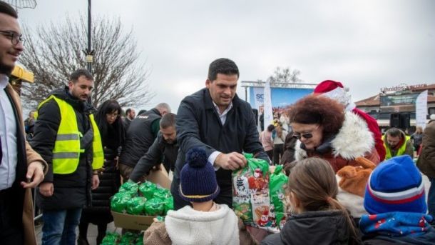 Над 3500 новогодишни пакетчиња беа поделени денеска на Градскиот плоштад „Свети Климент Охридски“ во рамки на големата хуманитарна манифестација организирана од Здружението за еднаква застапеност на лица со посебни потреби во медиумите „СОС Балкан Медиа“, со поддршка на Општина Охрид, Дебарско-Кичевската епархија и општествено одговорни компании.