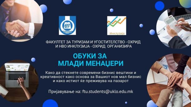 Обука за млади менаџери ќе се одржи во Факултетот за туризам и угостителство во Охрид во соработка со Граѓанската организација „Инклузија“.