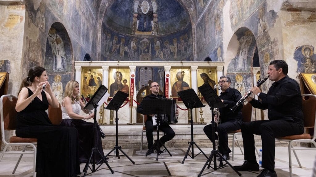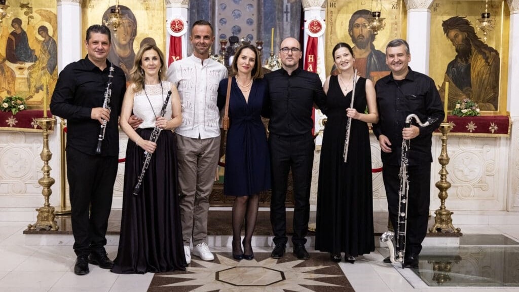 Камерниот ансамбл „Консонанс“ со концертот „Мозаик“ вчеравечер се претстави пред публиката на фестивалот „Охридско лето“. Извонредните уметници, флејтистката Елена Дојчинова, Маја Чанаќевиќ која свири на англиски рог, кларинетистот Здравко Ангелов, Сашо Темелковски на бас-кларинет и Дарко Илиевски на хармоника кои се и професионални музичари во Македонската филхармонија, ја збогатија фестивалската програма на класична музика со дела напишани од македонски композитори.
