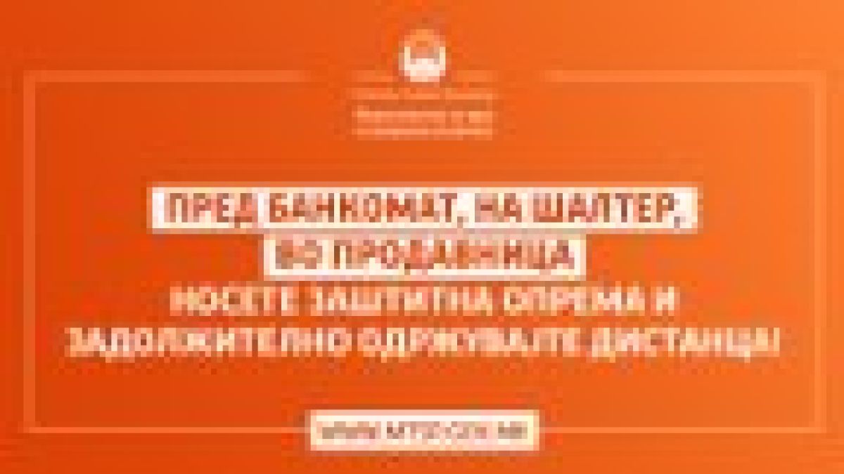 Почитувањето на препораките за носење лична заштитна опрема на лицето и држење растојание од најмалку два метра додека чекате во ред пред или внатре во банките, е во интерес на сите нас.