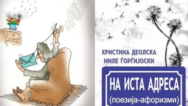 Утре, четврток, од 12 часот во „Прличевата одаја“ на НУ Библиотека „Григор Прличев“ во Охрид ќе биде промовирана книгата „На иста адреса“ од aвторите Христина Деолска и Миле Ѓорѓијоски. Се работи за заедничка книга во која на еден спонтан начин се запишани поетски и афористички дела на обата автори.