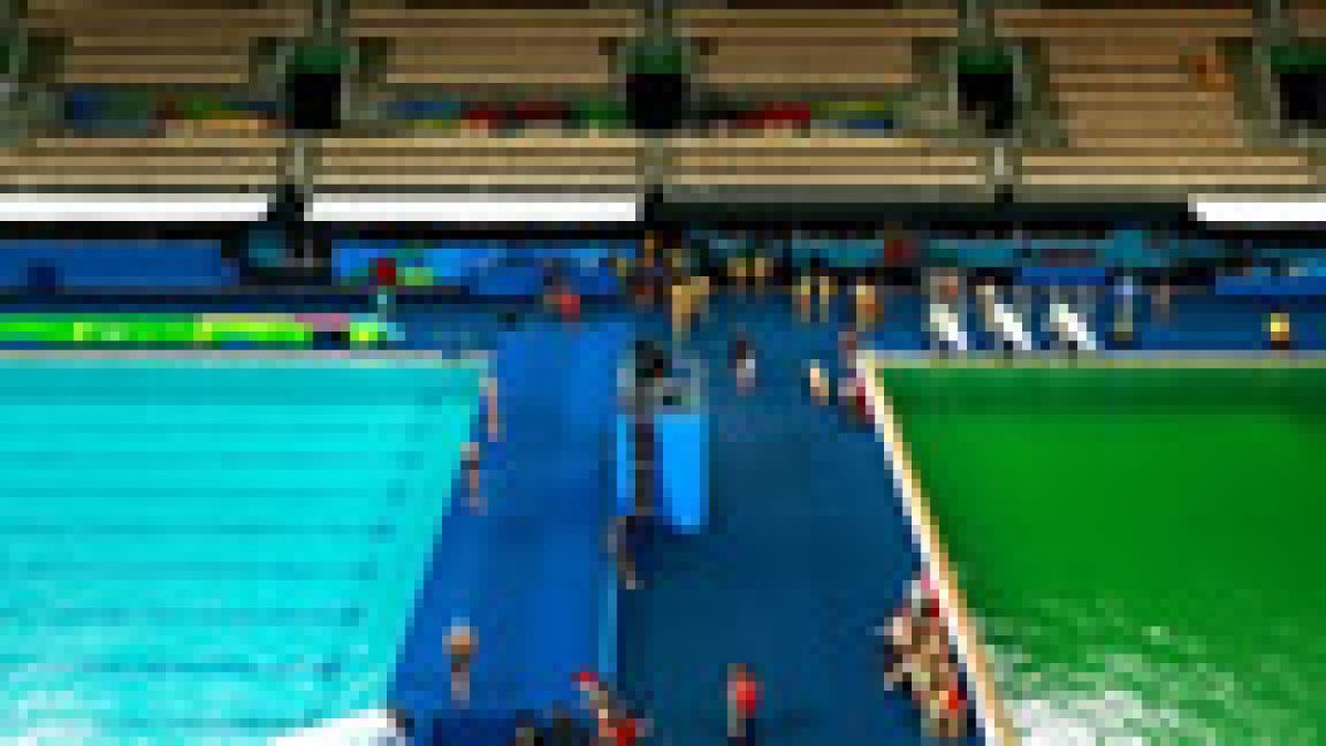 Пред финалето на женските синхронизирани скокови во вода, гледачите и сите оние кои се најдоа на базенот беа сведоци како водата во базенот го менува изгледот. Двата базени биле сини, а одеднаш тој каде се одвиваше натпреварувањето во скокови позелена.