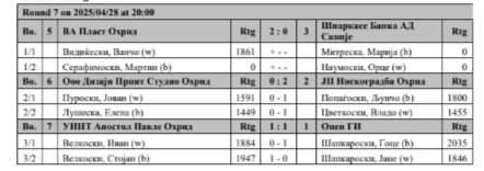 Во организација на Шаховскиот клуб „Ласкер“ од Охрид, синоќа се одигра седмото коло од Бизнис лигата „Охрид 2025“ во шах.